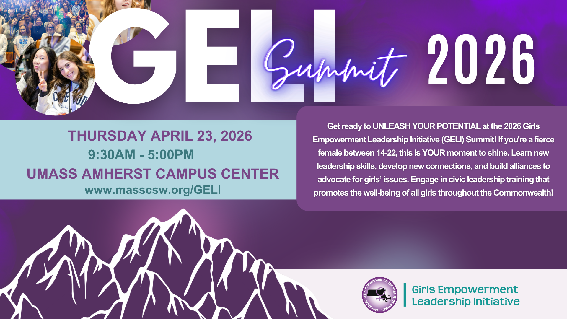 Have you registered for the Girls Empowerment Leadership Initiative (GELI) 2026 Summit yet? Time is running out to sign up before the deadline! This isn’t just an event – it’s your launchpad to becoming an extraordinary change maker in policy, leadership, and community impact. We hope you join us at this year’s groundbreaking GELI Summit on Thursday, April 23, 2026, at @uofmass. Register as an individual or register to bring a group to GELI via link in bio or via website at: www.masscsw.org/geli
