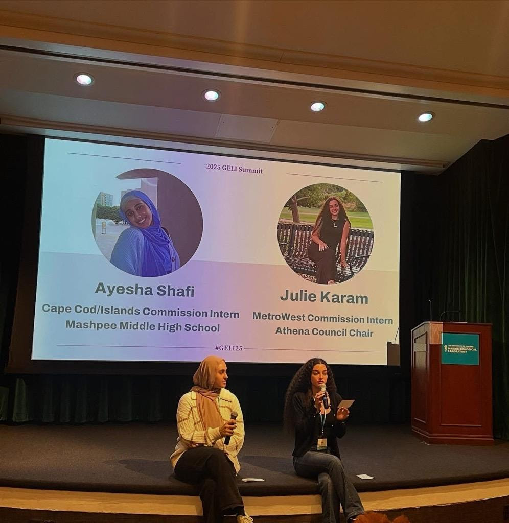 In 2025, CCICSW hosted a girls listening circle in late January at the Mashpee Public Library. High school student leaders from Mashpee, Falmouth, and Sandwich schools attended. The event was organized and led by CCICSW high school intern Ayesha Shafi and the program included discussion of major issues of concern to girls, how to advocate for legislation at the state level, and how to better communicate with female students at each school regarding their needs. Several participants attended the 2025 GELI Summit in Woods Hole where CCICSW Intern Ayesha Shafi co-facilitated the GELI Town Hall.