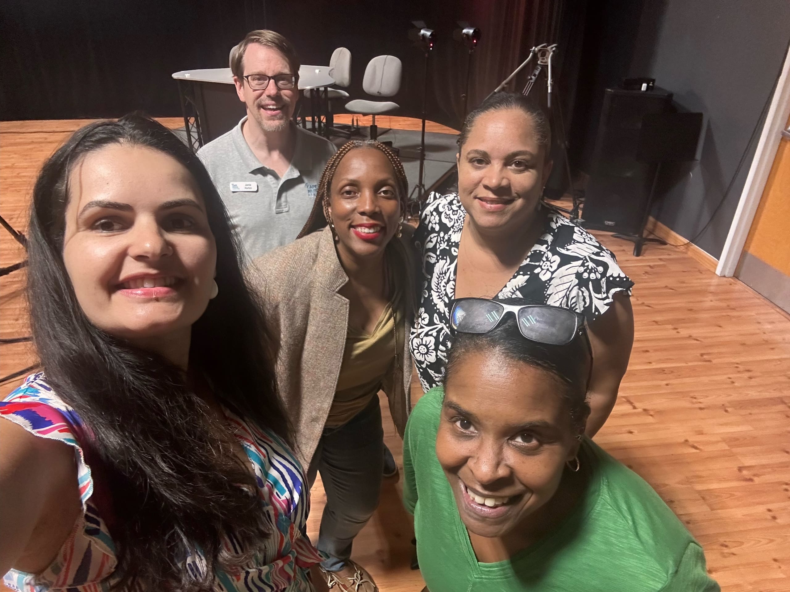 Above (right): Cape Cod and Islands Commissioners Natalia Frois, Chinna Mapp, and Amy Peters joined the staff at Cape Media Center in Dennis for media training in early September 2024.