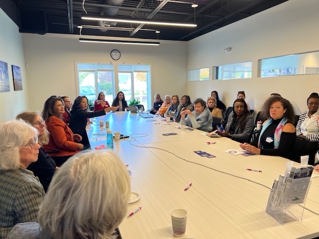 Photos for Women in Leadership Forum: CCICSW Commissioners Lynne Barbee, Amy Peters, Natalia Frois, Chinna Mapp, and Mary Waygan joined several civic leaders and community partners in October 2024 for a conversation about gaps in regional resources and services for women.