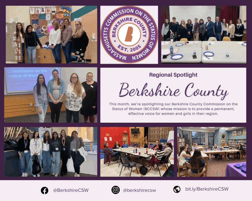 This month, we’re spotlighting our Berkshire County Commission on the Status of Women (BCCSW) which was founded in 2005, becoming the first regional commission to be established with a mission to provide a permanent, effective voice for women and girls in their county. Since their initial launch, BCCSW has maintained a strong relationship with their state legislators, advocating for regional priorities – and continues to create significant relationships with community partners across Berkshire County.